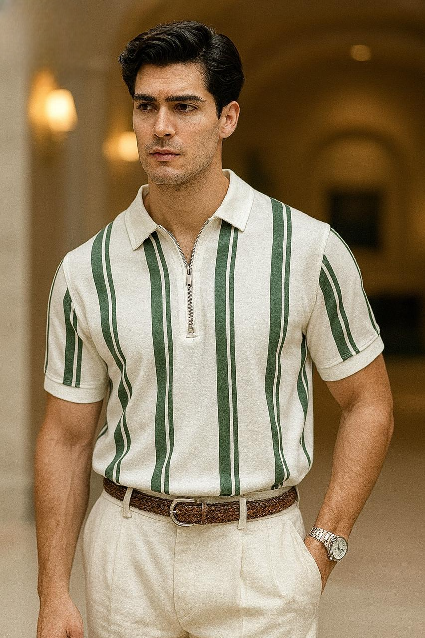 Designed for both comfort and fashion, this t-shirt features a modern lined print that adds a bold touch to your everyday look. The stylish zipped collar adds a unique twist, allowing you to switch between a casual or semi-formal vibe with ease. Made from soft, breathable fabric, it ensures all-day comfort and a perfect fit. Pair it with jeans or joggers for a standout outfit.